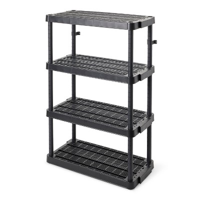 Hdx 4 Tier Plastic Garage Storage Shelving Unit In Black 28 In W X 52 In H X 15 In D 17307263b The Home Depot